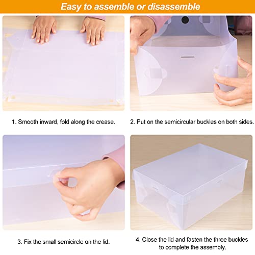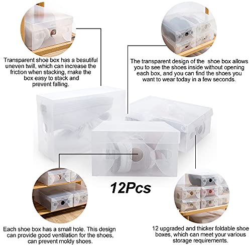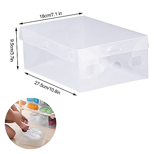 VCRANONR 12 Pezzi Scatole per Scarpe in Plastica Trasparente 27,5*18*9,5 CM Scatole per Scarpe Pieghevoli Impilabili Smontabili e Impermeabili per Organizzare Scarpe da Uomo Donna e Bambino, Bianco