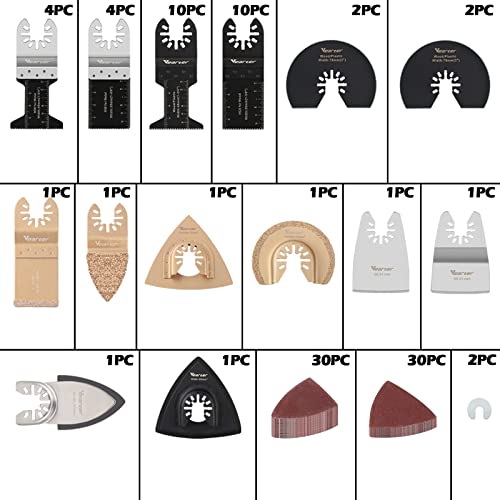 Vearter Set di 100 lame oscillanti universali oscillanti con carta vetrata, set di lame multiuso per legno, metallo, plastica