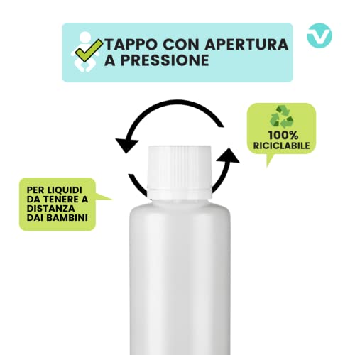 VECCHI 5 Bottigliette di plastica da 250ml con tappo dosatore e tappo di sicurezza OMAGGIO, etichetta adesive impermeabile, flaconi di plastica HDPE