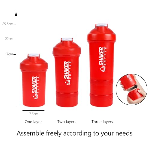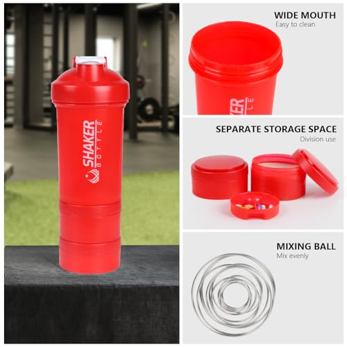 VECH Shaker Bottle,Shaker per proteine da 453.6 ml, con supplemento per contenere polvere e pillole, per palestra e allenamento, con sfera in acciaio inox, senza BPA (rosso)