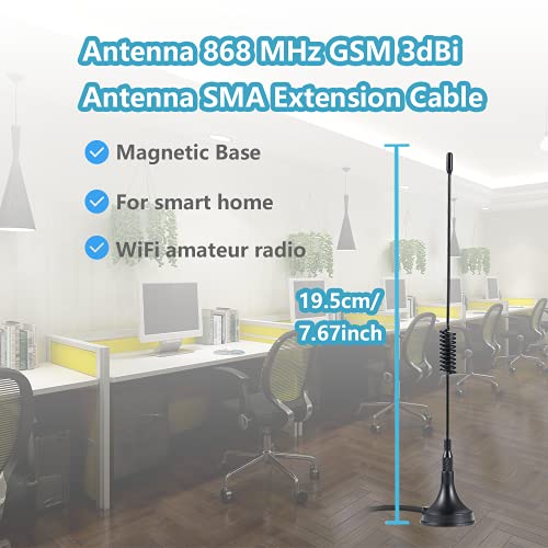 Vecys Antenna SMA 868 MHz Cavo Prolunga Antenna 3dBi GSM 3m Cavo RG174 Base Magnetica Adattatore Spina SMA Compatibile con Homematic CCU3 CCU2 Raspberry Pi HM MOD RPI PCB Kit ELV Kit Raspberry Matic
