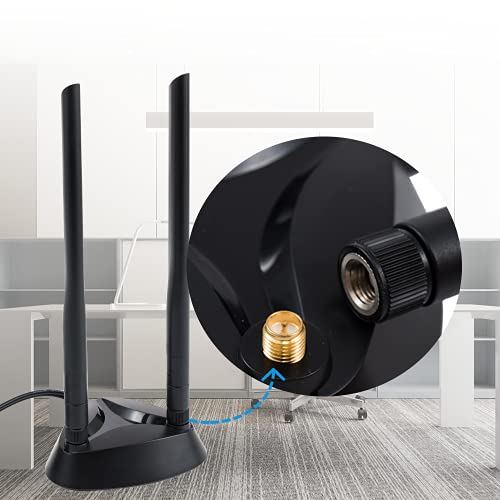 Vecys 2.4G / 5.8G Antenna WiFi a Doppia Frequenza Booster Segnale Base Magnetica Adattatore RP-SMA 6dBi Scheda Rete PCIE Desktop AX200 Antenna Esterna 1.2m 3.9ft per Scheda Router WLAN Wireless