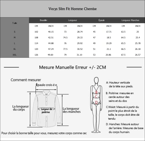Vecys Camicia da Uomo Camicia da Uomo Camicia a Maniche Lunghe da Uomo Slim Fit Senza Stiratura (Azzurro, XXL)