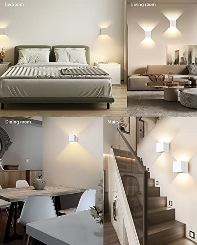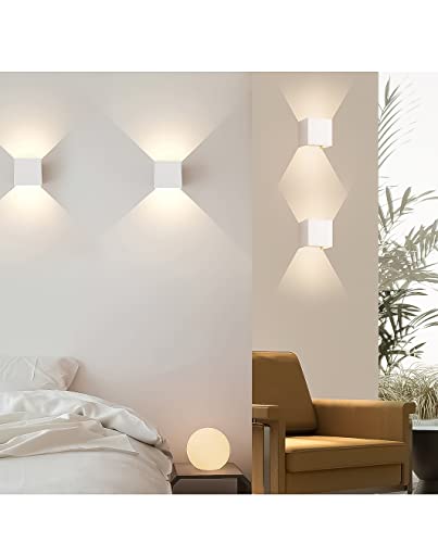 Vecys 2 Pezzi 12W Applique da Parete Interno Applique da Esterno IP65 Impermeabile Lampada da Parete LED Moderno Bianco Caldo 3000K Applique Cubo in Alluminio Angolo del Fascio Regolabile(Bianco)