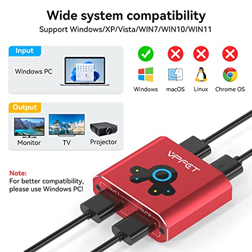 VEDINDUST HDMI Splitter Extend 4K@60HZ HDMI a doppio HDMI Adapter Supporto Mirror o Extend solo per le versioni di computer Windows XP/Windows VISTA/Windows 7/Windows 10/Windows 11