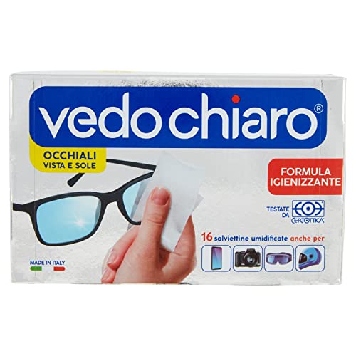 Vedo Chiaro Salviettine Umidificate per Occhiali, 16 Pezzi