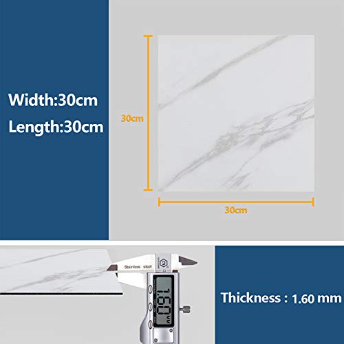 VEELIKE Adesivi per Piastrelle Marmo Bianco Pavimento PVC, Mattonelle Cucina 12Pezzi 30cm x 30cm