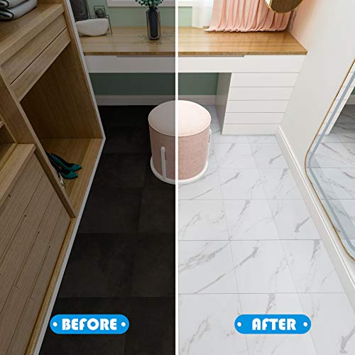 SPESSORE, ROBUSTO E ANTI-CREASE: VEELIKE piastrelle adhesive marmo è realizzata in vinile di alta qualità, più spesso di altri adesivi per piastrelle sottili, ma può comunque darti un'operazione di applicazione molto flessibile, VEELIKE stick on piastrelle per pavimenti risolve la tua preoccupazione per le pieghe e l'aspetto non liscio quando sono sulla superficie
