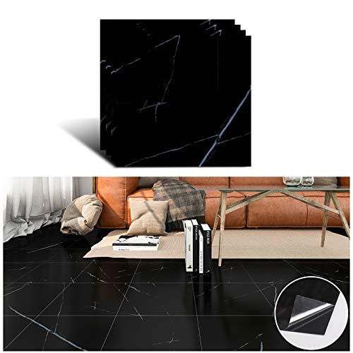 VEELIKE Adesivi per Piastrelle Marmo Nero Pavimento PVC Adesivo Mattonelle Adesive Adesivo Pavimento Vinile Piastrelle Adesive Cucina Pavimento Piastrelle Adesive 12Pezzi 30cm x 30cm