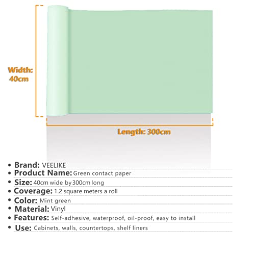 Informazioni sul prodotto: questa carta adesiva verde è realizzata in PVC di alta qualità ed ecologico. Dimensioni: 40 x 300 cm. La pellicola decorativa non solo offre un elevato grado di simulazione del colore puro, ma protegge i mobili o le pareti dall'acqua e dall'olio. I mobili o altre superfici possono essere protetti da scolorimento, umidità e macchie di grasso