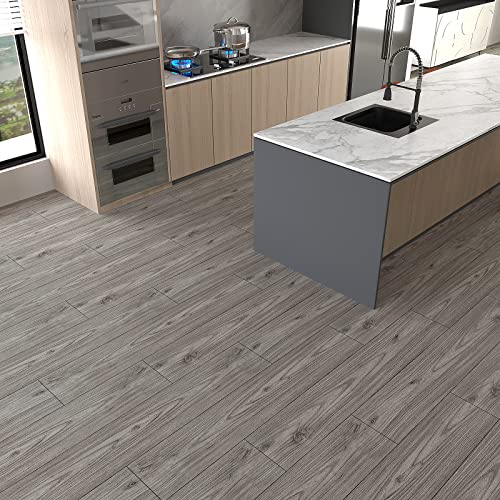 VEELIKE Pavimento in PVC Effetto Legno Grigio Piastrelle Adesive Bagno Impermeabile. Adesivi per Mattonelle Cucina, Pavimento Camera Letto 90cm×15cm 12 Pezzi