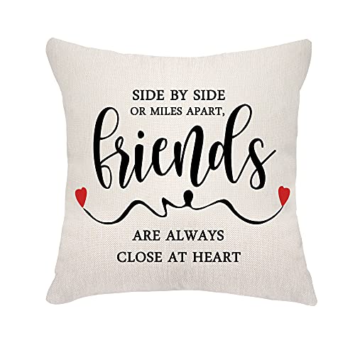 Veemizo Federa per cuscino per la migliore amica compleanno anniversario giorno dell'amicizia, federe per cuscino Side by Side or Miles Apart Friends Are Always Close At Heart