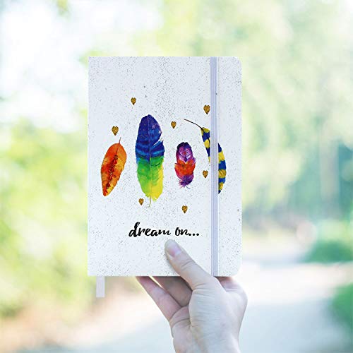 VEESUN A5 Quaderno Foderate Diario di Viaggio Taccuino Notebook Journal Agenda con Chiusura Elastica, Segnalibro, 192 pagine, 90GSM, Piuma colorata