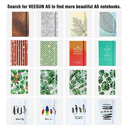 VEESUN Taccuino Viaggio A5 Righe, Rilegato Blocco Appunti 96 Fogli, Journal 90GSM, Diario con Elastico Rilegato Chiusura e Divisori, Regalo Laurea per Ragazzi Ragazze Studenti, Marrone Foglia