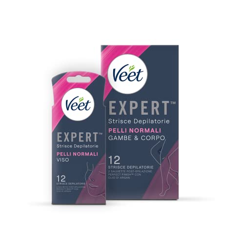 Veet Kit Expert Strisce Corpo Pelli Normali, Confezione da 12 + Strisce Viso