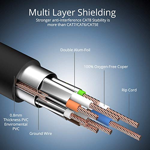 Design: il nostro cavo rete cat 8 è estremamente flessibile, robusto e misura solo 6,5 mm di diametro. Cavo adsl con Il connettore RJ45 è a prova di torsione con una giacca in PVC