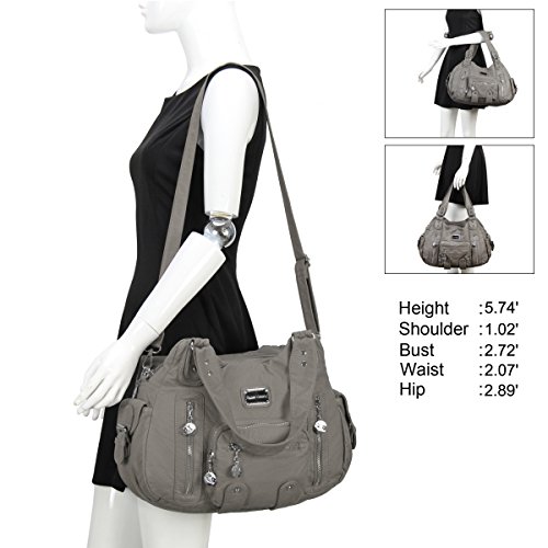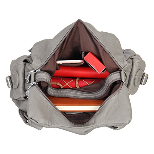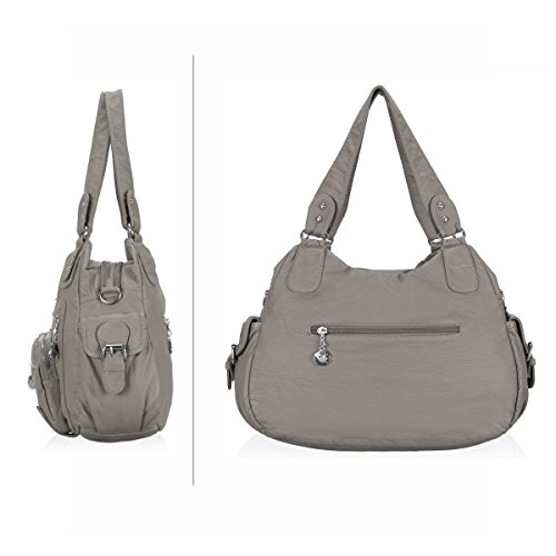 Veevan Borse da Spalla in pelle lavata stile Vintage Vagabondo(B-Grigio)