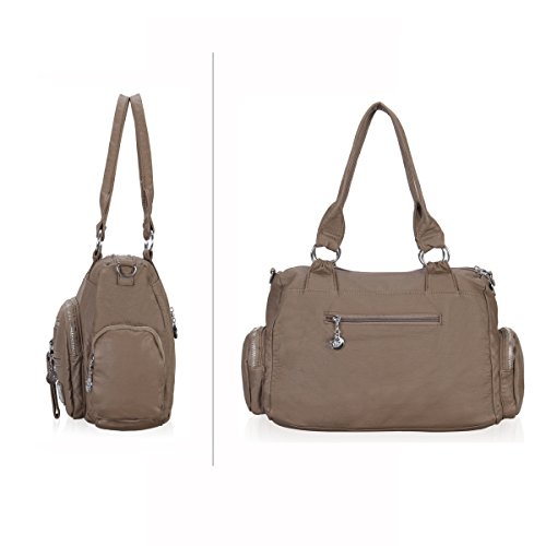 Veevan Borse da Spalla Vintage in pelle lavata (C-Grigio)