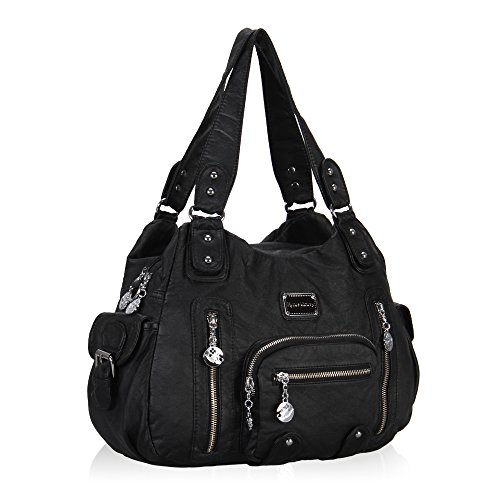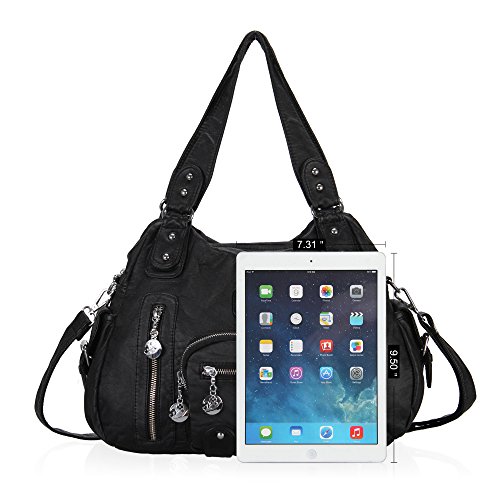 Veevan Borse da Spalla Vintage in pelle lavata (B-Nero)