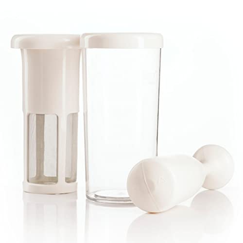2 ANNI DI GARANZIA // 100% FABRICATO IN EUROPA. 4 PEZZI: i) Filtro ii) Brocca iii) Coperchio iv) Mortaio. MATERIALI: Maglia d'acciaio inossidabile di prima qualità e plastica senza componenti tossici come BPA, PVC, Formaldeide, ecc. (certificazioni disponibili nel nostro sito web). Progettato per durare tutta la vita.