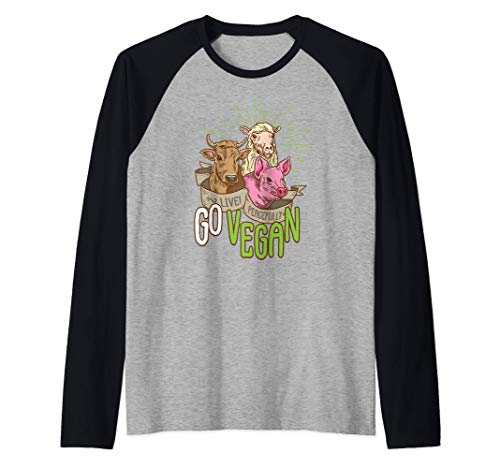 Vai vegano amores animali divertenti animali mucca pecora Maglia con Maniche Raglan