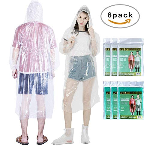 Vegbirt USA e Getta Pioggia Poncho di Emergenza (Confezione da 6), Assortiti Unisex Adulti Emergenza Impermeabile Riutilizzabile Impermeabile con Cappuccio, Perfetto per Festival, Campeggio e parchi