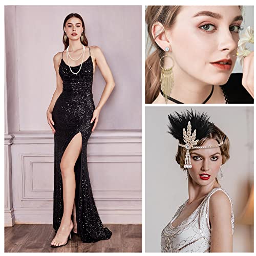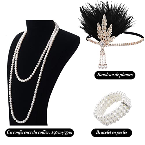 【Set super valore】Il set include 1 paio di guanti tagliati in pizzo, 1 fascia di piume, 1 paio di orecchini, 1 collana di perle, 1 braccialetto di perle e 1 palo a mano. Il set ricco può soddisfare le vostre esigenze di abbigliamento degli anni '20 per una festa di moda retrò.