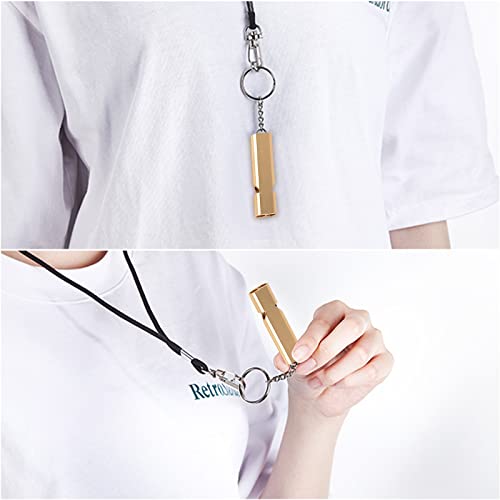 VEGCOO 6 Pezzi Fischietto Emergenza, Dorato d'Argento Fischietto Forte Fischietto, Doppio Tubo a Decibel Elevato Fischietto Arbitro Sicurezza con Cordino Portachiavi per Viaggi, Sport, Salvataggio