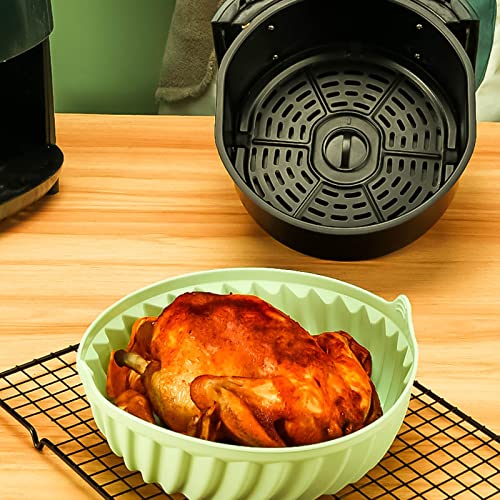 Vegena 2 stampi in silicone per friggitrice ad aria calda, 22 cm Air Fryer Silicone Pot Riutilizzabile Airfryer Teglia da forno in silicone con due guanti da forno, stampo in silicone per friggitrice