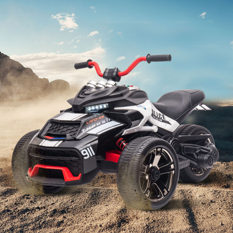 Caratteristiche 1. Motocicletta a tre ruote per veicolo elettrico per bambini: massima flessibilità e sicurezza per tutti i terreni! Il nostro veicolo elettrico per bambini a tre ruote e tripla trazione offre la massima flessibilità e manovrabilità, sia su strade di montagna sconnesse che su dune di sabbia piatte. Più sicuro di una moto e più manovrabile di un fuoristrada: per avventure spensierate per il tuo bambino! 2. Porta a tuo figlio potenza e divertimento illimitati! Dotato di due motori da 25 W, il nostro veicolo elettrico per bambini offre prestazioni potenti in modo che il tuo bambino possa sperimentare velocità e avventura allo stesso tempo! 3. Vita più lunga per avventure più lunghe! Dotato di batterie potenziate da 12V7Ah, il nostro veicolo elettrico per bambini offre un'autonomia più lunga così il tuo bambino potrà giocare ancora più a lungo senza preoccupazioni! 4.Un'esperienza di guida reale e divertente! Dotata di un cruscotto realistico e di un lettore musicale