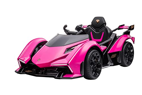 Veicolo elettrico per bambini, Lamborghini V12 Vision Gran Turismo, licenza 12V7AH, 2 motori, telecomando da 2,4 GHz, MP3, sedile in pelle + Eva (rosa)