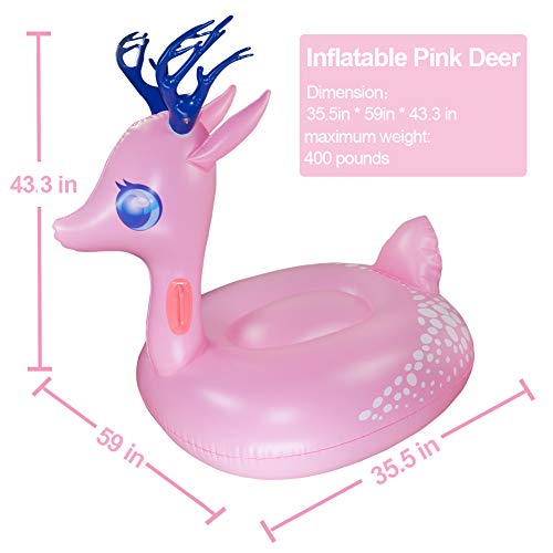 Veitorld Gonfiabile Giocattoli Piscina, Piscina Galleggiante per Bambini Ragazze Adulti Giocattolo per Festa in Piscina a valvole Rapide Lettini, per Spiaggia(Cervo Rosa)