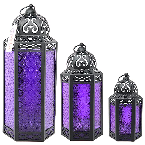 Vela Lanterns Set di 3 lanterne decorative per interni ed esterni, per decorazioni per la casa, viola