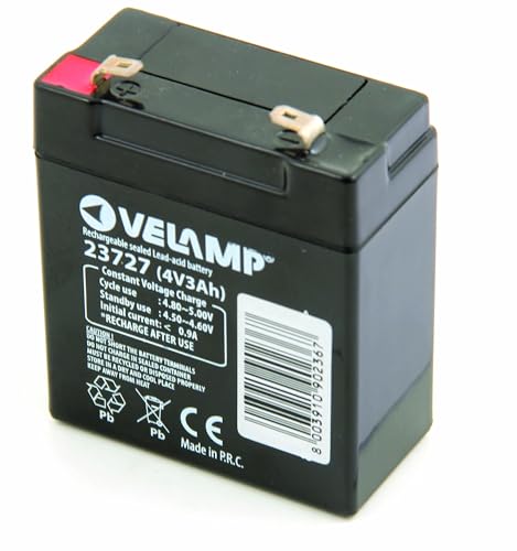 VELAMP 23727 Batteria Ricaricabile Piombo, Attacchi Faston F1, 4V, 3Ah, Nero
