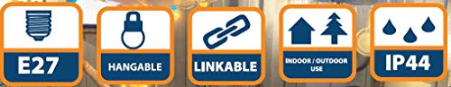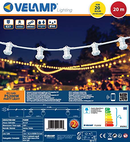 Velamp Cordoniera 20 portalampada E27. Catena luci da Giardino. per Interno ed Esterno. Lunghezza: 20m. Prolungabile, appendibile, Bianco