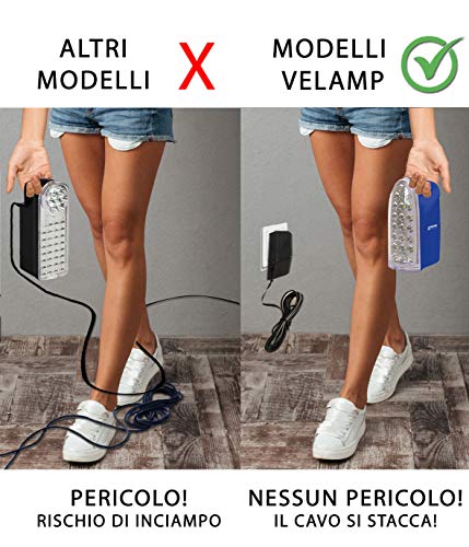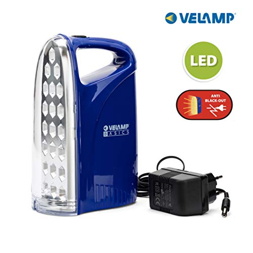 Velamp Lampada di Emergenza Portatile Ricaricabile 21 LED, 250lm Super Luminosa. con Caricatore Esterno: più sicura. Leggera e compatta, Blu