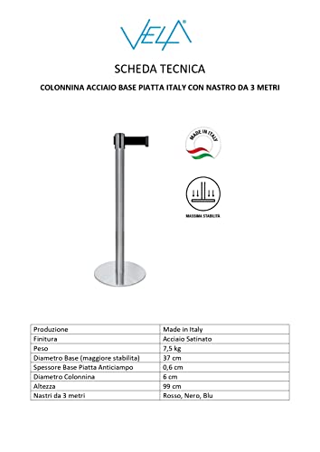 VelaSystem | Colonnine Segnapercorso Base Piatta Acciaio con Nastro da 3 metri |MADE IN ITALY| (NERO)