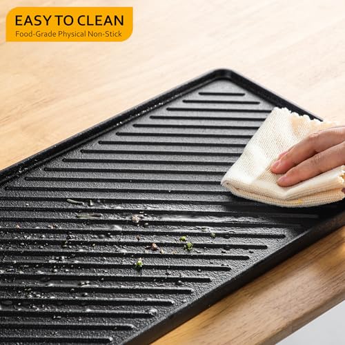 MULTIFUNZIONALE - Velaze teglia in ghisa ha due superfici di cottura: teglia e superficie piana. Che si tratti di carne, pesce o verdure, è la scelta migliore per grigliare il cibo. Le piastre in ghisa possono essere utilizzate in molti modi. Con questa straordinaria funzione barbecue reversibile, puoi utilizzare i noodles barbecue a coste per cucinare le classiche bistecche al barbecue e gustare deliziosi piatti cucinati su noodles lisci.