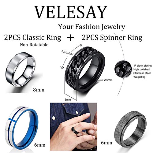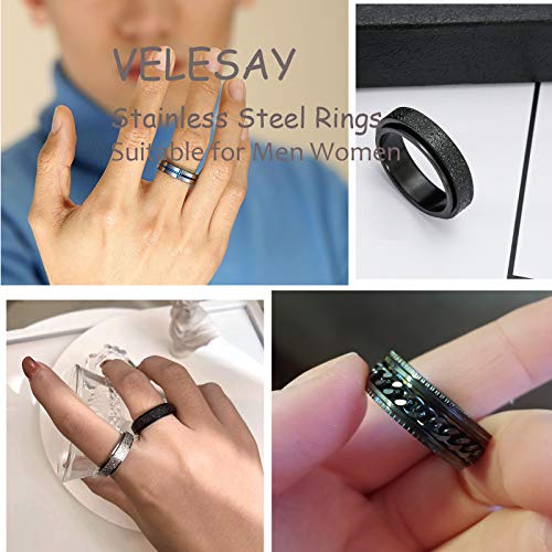 VELESAY 4PCS Anello Uomo Acciaio Inossidabile Vintage Catena Anelli Punk Gotico Anello Donna Uomo Nero Anello Donna Nero Acciaio