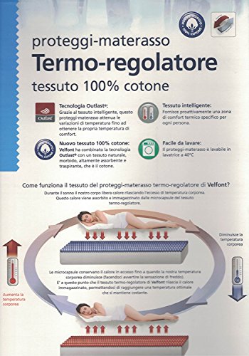 Velfont COPRIMATERASSO Fresco Proteggi Materasso con Angoli TERMOREGOLATORE in Tessuto Outlast di 100% Cotone Matrimoniale Maxi 180X190/200 cm