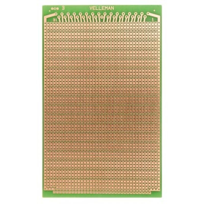 Dettagli tecnici Contenuto 1 pz. Dimensione del prodotto, larghezza 100 mm Dimensione del prodotto, lunghezza 160 mm Dimensioni (L x L) 160 mm x 100 mm Modelli (PCB) Singola faccia Spessore materiale 1.6 mm Tipo prodotto Scheda formato Europa Modello: 3 foriMateriale: Circuito stampato su un lato, epossidico FR-4, 1,6mm, 1,0 oz. Supporto in rame fluxDiametro foro: 1.0 mm
