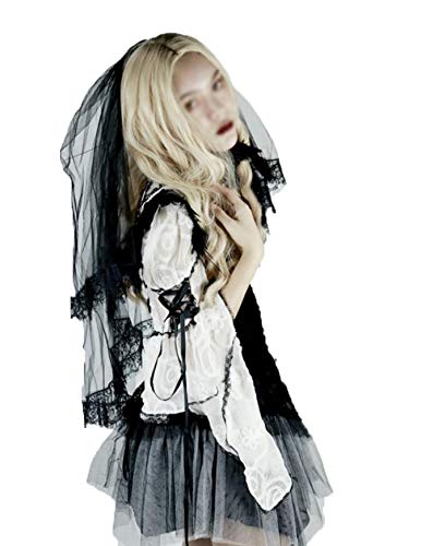 Velo di pizzo nero, per Halloween, 3 metri, 1 strato, lungo, per travestimento da sposa, per il Giorno dei Morti, cosplay, accessorio per capelli, per fotografie e travestimenti.