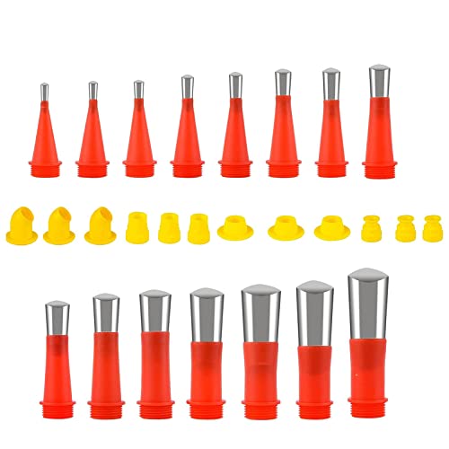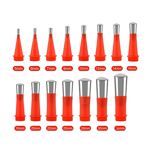 Puoi ottenere: la confezione contiene 15 diverse dimensioni di ugelli per calafataggio da 5 mm, 6 mm, 7 mm, 9 mm, 10 mm, 12 mm, 14 mm, 16 mm, 18 mm, 20 mm, 22 mm, 25 mm, 28 mm, 30 mm e 35 mm, con 12 basi di connessione.