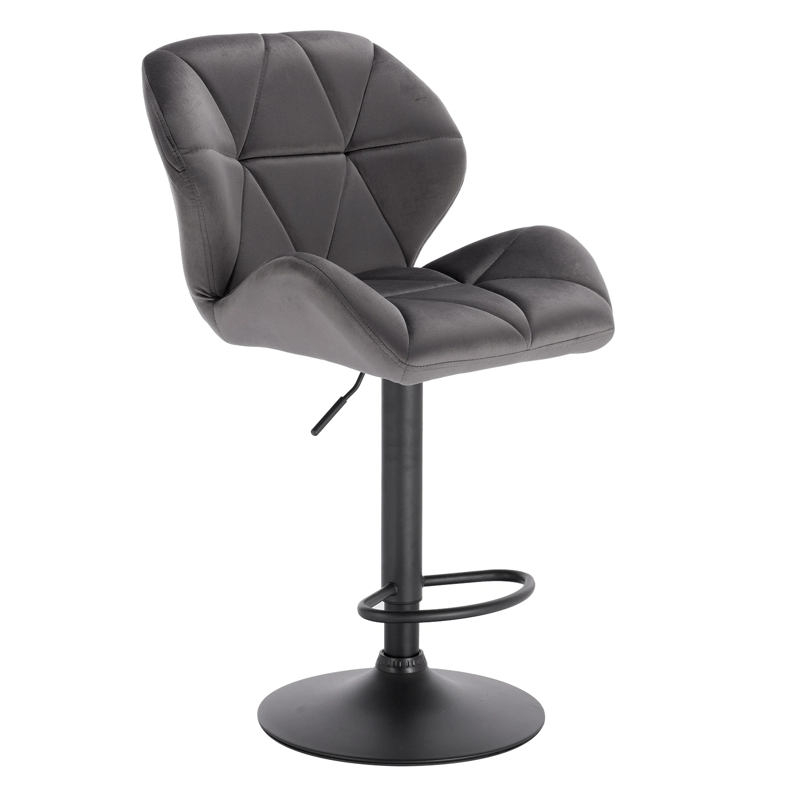 1PC Velvet Bar Chairs Breakfast Dining Stools Adjustable Swivel Gas Lift Steel Footrest Base Kitchen Island Counter Bar Stools