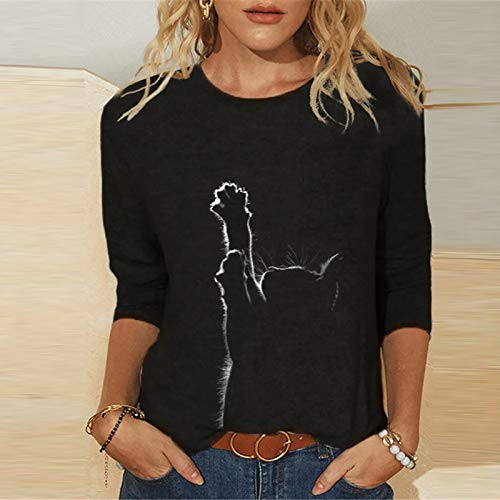 VEMOW - Maglietta a maniche lunghe per autunno e inverno, con motivo di gatto, a maniche lunghe, casual, con scollo rotondo, camicetta con stampa di animali Nero XXXXL