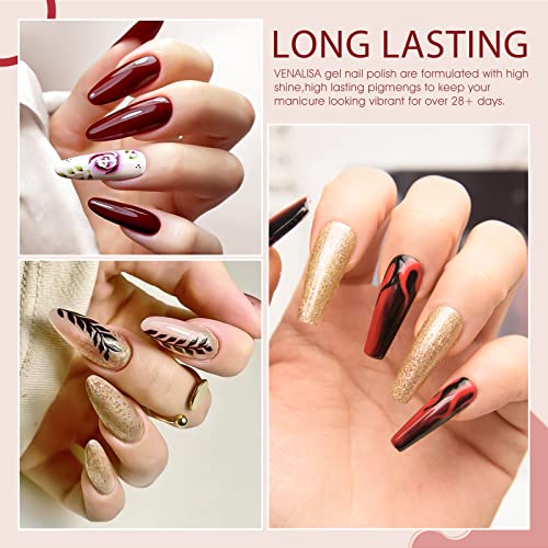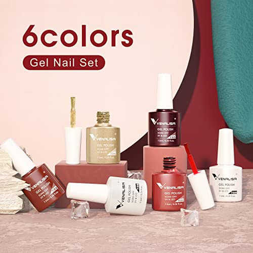 VENALISA Smalto Semipermante Per Unghie 6 Colori glitter oro nastro bianco rosso scuro bordeaux 6 Smalti Semipermanenti per Unghie Soak Off UV Gel Nail Polish