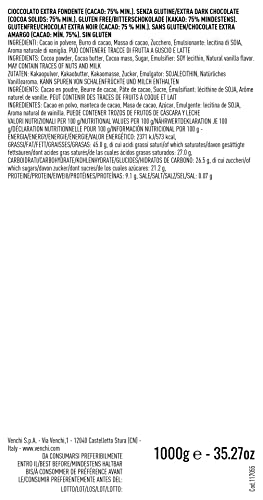 Venchi - Blend 75% in Busta Bulk, 1kg - Pregiate Miscele di Cacao Criollo e Forastero - Cioccolato Fondente Senza Glutine