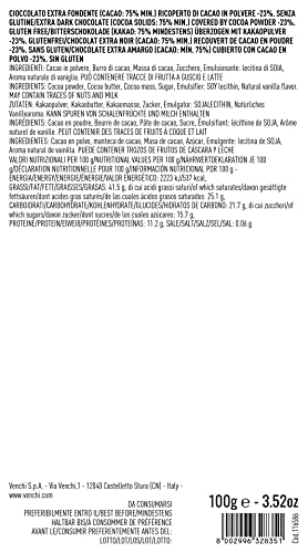 Venchi - Fave Cuor di Cacao in Sacchetto - Cioccolato Extra Fondente 75% ricoperto con Polvere di Cacao, 100g - Vegano - Senza Glutine