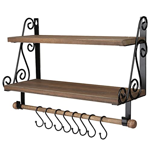 Vencipo Mensole da Muro con 8 Ganci Rimovibili Organizer per Accessori Cucina, Mensola per Montaggio a Parete per Accessori Bagno con Porta Asciugamani in Legno per Camera da Letto, Soggiorno.