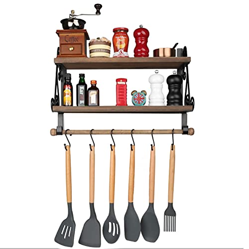 Mensola Della Cucina: Questa mensola della cucina sarà anche una splendida aggiunta alla vostra cucina, organizzerà i vostri utensili da cucina, tazze, pentola e padella con ganci, spezie e lattine potrebbero essere organizzati in tavola di legno. questo ripiano viene utilizzato anche come porta asciugamani di carta quando si rimuovono i ganci.